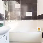 100 m^2 The Victoria - Close To Centre - Sleeps 8 comprises a dressing room featuring a sofa set, and modern comforts like a flat-screen TV with satellite channels. Also, a bathroom comes with a tub and a separate toilet, along with a hairdryer and bath sheets.
